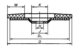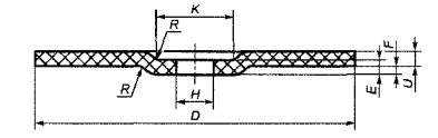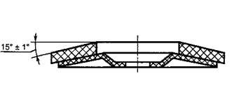 Дата введения - 2011-01-01 1 Область примененияНастоящий стандарт распространяется на зачистные круги на бакелитовой связке с упрочняющими элементами (BF) или без упрочняющих элементов (В), а также на зачистные лепестковые торцовые круги для прямых, угловых и торцовых ручных шлифовальных машин. 2 Нормативные ссылкиВ настоящем стандарте использованы нормативные ссылки на следующие стандарты: ГОСТ Р 52381-2005 (ИСО 8486-1:1996, ИСО 6344-2:1998, ИСО 9138:1993, ИСО 9284:1992) Материалы абразивные. Зернистость и зерновой состав шлифовальных порошков. Контроль зернового состава ГОСТ Р 52587-2006 Инструмент абразивный. Обозначения и методы измерения твердости ГОСТ Р 52588-2006 (ЕН 12413:1999, ЕН 13743:2001) Инструмент абразивный. Требования безопасности ГОСТ Р 52710-2007 Инструмент абразивный. Акустический метод определения твердости и звуковых индексов по скорости распространения акустических волн ГОСТ Р 52781-2007 (ИСО 525:1999, ИСО 603-1:1999; ИСО 603-6:1999, ИСО 13942:2000) Круги шлифовальные и заточные. Технические условия ГОСТ 15.309-98 Система разработки и постановки продукции на производство. Испытания и приемка выпускаемой продукции. Основные положения ГОСТ 3060-86 Круги шлифовальные. Допустимые неуравновешенные массы и метод их измерения ГОСТ 5009-82 Шкурка шлифовальная тканевая. Технические условия ГОСТ 13344-79 Шкурка шлифовальная тканевая водостойкая. Технические условия ГОСТ 27181-86 Шкурка шлифовальная для обработки труднообрабатываемых материалов. Технические условия ГОСТ 27595-88 Материалы шлифовальные и инструменты абразивные. Упаковка, маркировка, транспортирование и хранение ГОСТ 30513-97 Инструмент абразивный и алмазный. Методы испытаний на безопасность Примечание - При пользовании настоящим стандартом целесообразно проверить действие ссылочных стандартов в информационной системе общего пользования - на официальном сайте Федерального агентства по техническому регулированию и метрологии в сети Интернет или по ежегодно издаваемому информационному указателю «Национальные стандарты», который опубликован по состоянию на 1 января текущего года, и по соответствующим ежемесячно издаваемым информационным указателям, опубликованным в текущем году. Если ссылочный стандарт заменен (изменен), то при пользовании настоящим стандартом следует руководствоваться заменяющим (измененным) стандартом. Если ссылочный стандарт отменен без замены, то положение, в котором дана ссылка на него, применяется в части, не затрагивающей эту ссылку. 3 Классификация и размеры3.1 Круги следует изготовлять следующих типов: 1 - прямого профиля; 5 - с выточкой; 6 - чашечные цилиндрические; 11 - чашечные конические; 27 - с утопленным центром; 28 - с утопленным центром тарельчатые; 29 - лепестковые торцовые; 35 - торцовые прямого профиля; 36 - прямого профиля с запрессованными крепежными элементами. 3.2 Размеры кругов должны соответствовать указанным на рисунках 1 - 11 и в таблицах 1 - 11.