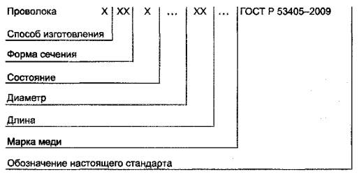 4.2 Теоретическая масса 1 м проволоки приведена в приложении А. 4.3 Овальность проволоки не должна превышать половины предельного отклонения по диаметру. 4.4 Проволоку изготовляют в отрезках длиной от 1500 до 2000 мм включительно. Допускается изготовление проволоки длиной менее 1500 мм, но не менее 800 мм в количестве, не превышающем 10% массы партии. Условные обозначения проставляют по схеме: