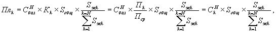где Sжk - жилая площадь k-той комнаты в коммунальной квартире (кв.м.); Sобщ - общая площадь коммунальной квартиры (кв. м); N - число комнат в коммунальной квартире;