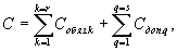 где П - размер платы за содержание и ремонт жилого помещения в расчете на 1 кв.м. общей площади помещений в многоквартирном доме, руб. в месяц; Собяз.k - расчетная стоимость k-го вида обязательных работ (услуг), руб./кв.м в месяц; r - перечень обязательных работ и услуг, установленный в соответствии с п. 2.1. Методических рекомендаций. 4.3. Пересчет стоимостей обязательных и дополнительных работ и услуг, определенных по результатам конкурса и подлежащих указанию в договорах управления многоквартирным домом, в соответствии с величиной платы, размер которой указан в извещении о проведении конкурсов, производится в следующем порядке. 4.3.1. Определяется общая стоимость обязательных и дополнительных работ и услуг, определенных по результатам конкурса, по следующей формуле: