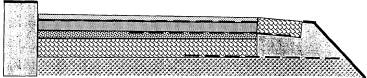 При участковой схеме укладки ГМ можно уменьшать только объемы работ по заливке трещин (п. № 27) с учетом рекомендаций, указанных в п. аXIII настоящего раздела. Раздел 7. Технология производства работа) До начала устройства армированного асфальтобетонного покрытия должны быть выполнены внеплощадочные и внутриплощадочные подготовительные работы. аI) Внеплощадочные работы включают в себя комплекс организационно-технических мероприятий, состав которых зависит от конкретных условий, обеспечивающих высокое качество устройства покрытия с требуемым темпом работ. Наиболее важными из этих мероприятий являются: - организация оперативного входного контроля качества и объема материалов (в том числе геосинтетических материалов); - подготовка рецептуры смеси и отладка режимов работы асфальтобетонного завода и асфальтоукладчика; - определение потребного количества и подготовка транспортных средств для вывозки смеси и геосинтетического материала; - подготовка подъездных транспортных путей; - определение потребного количества и подготовка машин, механизмов, инструментов и оборудования (в том числе для распределения и фиксации геосинтетического материала по п. зIII настоящего раздела для эффективной работы на дороге; - обучение инженерно-технического персонала и рабочих в части особенностей выполнения операций по устройству армированного покрытия. аII) Внутриплощадочные подготовительные работы выполняются непосредственно на дороге и входят в перечень производственных операций, обеспечивающих качество получаемого покрытия. Особыми видами внутриплощадочных подготовительных работ, характерными для устройства армированного асфальтобетонного покрытия, являются следующие: - обеспечение организованного проезда транзитного транспорта; - настройка всех дозирующих систем автогудронатора и уточнение нормы розлива вяжущего, обеспечивающей качественную фиксацию геосинтетического материала на основании (см. п. з настоящего раздела); - проверка работы специализированной машины для распределения геосинтетического материала (если таковая имеется); - проверка работы специального стиплера или строительно-монтажного пистолета, подбор дюбелей и патронов, используемых для фиксации геосинтетического материала на основании (при необходимости, см. п. з) настоящего раздела; - пробное распределение и уплотнение асфальтобетонной смеси комплектом катков для проверки отсутствия сдвигов геосинтетического материала при воздействии колес автосамосвалов, гусениц (колес) асфальтоукладчика и отсутствия значительных повреждений армирующего материала после воздействия уплотняющих средств (см. п. 4 таблицы 2 и п. з настоящего раздела). б) Работы по устройству слоев покрытия с применением армирующих прослоек выполняют в соответствии с рекомендациями СНиП 3.06.03-85, СНиП 12-03-2001, ВСН 8-89, Методических рекомендаций по ремонту и содержанию автомобильных дорог, ВСН 37-84 по типовым технологическим схемам с некоторыми видоизменениями и добавлением отдельных операций. В число таких операций, изменяемых или добавляемых в связи с устройством армирующей прослойки из геосинтетических материалов, обычно входят следующие: - подготовка основания (существующее покрытие); - розлив вяжущего; - подготовка армирующего материала (при необходимости); - укладка и приклеиван