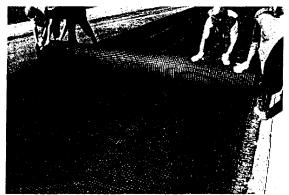 Рисунок 5 Укладка геосетки вручную Рулон укладывают на подгрунтовонное основание, точно ориентируют по краю основания и разматывают сетку на 10-15 м, проверяя правильность направления укладки. При значительном темпе работ (более 3000 м2/см) численность бригады увеличивают, либо используют специальный навесной механизм (рисунок 6).