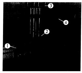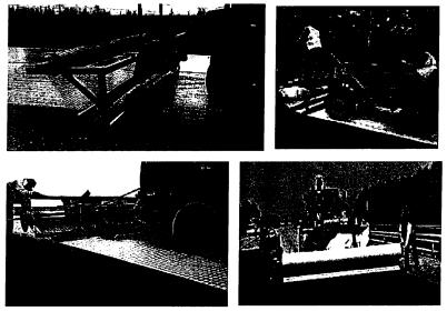 Рисунок 6 Навесные механизмы для раскладки армирующих материалов Число одновременно раскатываемых рулонов зависит от их ширины и ширины основания. Например, при ширине основания 8 м и ширине рулона 4 м сетку укладывают с отступом от краев на 7-8 см для соблюдения перекрытия полос геосетки посередине покрытия на 14-16 см. При необходимости одновременного раскатывания 2-3 рулонов работы ведут с опережением крайнего (внешнего) рулона, который исполняет роль шаблона и ориентира для других, соседних рулонов. Рекомендуемая ширина перекрытия продольных сопряжений рулонов 10-15 см, поперечных сопряжений рулонов - 20-25 см (при использовании геокомпозита перекрытие соседних полос можно не производить). При укладке рулонных ГМ на кривых малого радиуса приходится разрезать армирующий материал поперек полос один или несколько раз (рисунок 7 А). Длина каждой полосы L зависит от радиуса кривой R и величины допустимого расстояния между краем геосетки и покрытия (обычно составляет до 0,3 м). При известной величине R длину полосы ориентировочно можно определить по формуле L £ 1,5ÖR. При укладке полос ГМ над извилистыми трещинами рекомендуемая ширина полосы составляет 1,5 м, фактическая ширина определяется очертаниями и извилистостью трещин (рисунок 7 Б). При этом исходят из требований о минимальной длине "заделки" геосетки, равной 70 см в каждую сторону от трещины, и минимальном перекрытии полос, равном 25 см. Более эффективны сплошные полосы по всей длине, но при большой извилистости трещин полосы можно разрезать и укладывать с перекрытием. При комбинированном армировании сплошным полотном и полосами последние должны укладываться и приклеиваться к основанию под сплошное полотно ГМ (рисунок 7 В). Начало и окончание каждого следующего рулона ГМ, укладываемого по ширине покрытия, необходимо смещать в продольном направлении на 2-3 м (см. рисунок 7 А и В). При использовании для армирования покрытия геокомпозита дополнительная фиксация ГМ к основанию, как правило, не требуется. Рисунок 7 Схемы укладки и крепления полотен и полос геосетки на основании: А - при армировании сплошным полотном на кривых малого радиуса; Б - при армировании полосами над трещинами; В - при комбинированном армировании полосами и сплошным полотном; 1 - продольные и поперечные трещины; 2 - полосы геосетки; 3 - дополнительная фиксация полос к основанию; 4 - полотна геосетки, укладываемые поверх полос. зIV) Протяженность участка, на котором укладывается армирующий материал, зависит от условий производства работ. При этом исходят из следующих требований: не допускать движения по ГМ транзитного транспорта; не допускать разворота автосамосвалов, подвозящих смесь, на участке, где уложен ГМ; осуществлять медленное равномерное движение груженых автосамосвалов к асфальтоукладчику задним ходом по одной колее. Если после движения нескольких автосамосвалов наблюдается прилипание ГМ к колесам, то следует скорректировать норму розлива вяжущего или вручную выполнять подсыпку на колею асфальтобетонной смеси из бункера асфальтоукладчика. зV) Значительное снижение качества армированного асфальтобетонного покрытия может произойти в результате гранулометрической и температурной сегрегации (неоднородности) асфальтобетонной смеси. Из-за гранулометрической сегрегации на отдельных участках уложенного сл