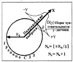 При Ri£1000 м минимальное значение Ri выбирают равным Rmin = R1 = HIÖ2, где в качестве высоты источника HI, принимают высоту венттрубы АС, а последующие значения Ri+1, Ri+2 находят, используя формулу (10) или кривую рис. 4 для определения DRi и соотношение: Ri+1 = Ri+DRi. При найденных Ri, DRi, расстояния ri на плоскости (подстилающей поверхности) от основания источника до датчика, при заданной величине HI, для больших и малых Ri, находят, принимая rmin = r1 = HI, из выражений: Таким образом, предложенный метод расстановки детекторов фотонного излучения АСКРО, с учетом их необходимого и достаточного количества и равномерности азимутального распределения вокруг АС, удовлетворяет экономическим, экологическим и физическим принципам, которые дают основание говорить, что расстановка постов контроля, выполненная указанным методом, действительно является оптимальной. Список литературы к Приложению № 211. Машкович В.П., Кудрявцева А.В. Защита от ионизирующих излучений. Справочник. М: Энергоатомиздат, 1995, 496 с. 2. Тихонов А.Н. О решении некорректно поставленных задач и метод регуляризации. ДАН СССР, 1963, т. 191, № 3, с. 501-509. 3. Тихонов А.Н. Об устойчивости обратных задач. ДАН СССР, 1943, Т. 39, № 5, с. 195-198. 4. Фридман В.М. Метод последовательных приближений для интегральных уравнений Фредгольма I-го рода. Успехи математических наук, 1956, Т. 11, № 1, с. 233-234. 5. Sconfield N. Proc. Symp. № AS-NS 3017, 1962, p. 108. 6. Su Y. Study of scintillation spectrometry unfolding methods. Nucl. Instr. Meth., 1967, v. 54, p. 109-115. 7. Fabian H.U., Nemsman U. Determination of the energy spectrum of a gamma-ray flash. - Atomkernenergie, 1970, BD 16, S. 143-145. 8. Елохин А.П., Pay Д.Ф. Система контроля радиационной обстановки в зонах размещения объектов атомной промышленности. Патент РФ № 2042157, бюллетень № 23 от 20.08.95. Приложение № 22Метод уточнения величины мощности выбросаПри постановке задачи в выражение, описывающее источник выброса радиоактивной примеси в уравнении (14) Приложения № 5 к настоящему Положению, входит множителем мощность выброса РB. Если рассматриваемая примесь является радиоактивной, что и будем предполагать в дальнейшем, то мощность выброса будет определяться произведением расхода G [м3/с] на объемную активность примеси Q [Кюри/м3] (РB = GQ). Поэтому для определения мощности выброса необходимо измерять две величины: расход G и объемную активность Q. Разработки датчиков, непосредственно измеряющих мощность выброса, в настоящее время отсутствуют. Величину расхода, в основном, определяют, исходя из полной мощности вентиляционных установок, имеющих вывод в венттрубу. Объемная активность не может определяться в динамическом режиме, поэтому величина мощности выброса известна со значительной погрешностью. Вместе с тем, с уточнением мощности выброса корректируется как объемная активность воздушного бассейна, так и масштабы радиоактивного загрязнения окружающей среды в целом. Воспользуемся