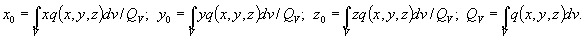 Предполагая кратковременность выброса, можно пренебречь его смещением относительно оси симметрии. Требование кратковременности существенно упрощает метод оценки мощности дозы, создаваемой облаком, тогда как оценка мощности дозы в динамическом режиме распространения требует учета не только деформации облака, но и учета метеорологических факторов атмосферы, особенностей подстилающей поверхности и т.д. (ниже будет показано, как обойти и эти трудности). Координаты центра масс облака определим следующим образом: