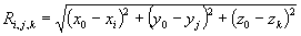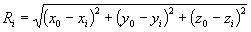6. Если в области распространения следа радиоактивного облака окажется несколько датчиков i = 1, 2, …, N¢ то, осуществляя подобную процедуру для каждого i-го датчика, абсолютное численное значение РВ находят как среднеквадратичное