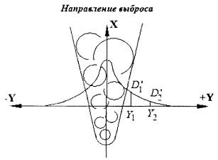 этом следует учитывать, что с уменьшением измеряемой мощности дозы Пусть величина D¢ф представляет собой фоновую мощность дозы, создаваемую фотонным излучением естественного или техногенного происхождения, а измерение мощности дозы в условиях аварийного выброса осуществляется в двух точках на расстояниях Y1 и Y2, (Y1<Y2), отстоящих от оси выброса X, представляющих соответственно значения D¢1(Y1) и D¢2(Y2), удовлетворяющих неравенству D¢1(Y1)>D¢2(Y2) (рис. 1). Введем значение веса di, представляющего собой относительный вклад разности измеренного значения мощности дозы за вычетом фонового значения к ее абсолютной величине