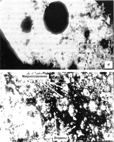 присутствуют микрооплавления (ОМ, 200х)