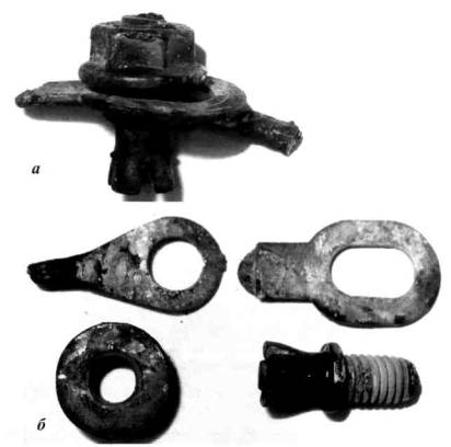 Рис. 30. Гайка (а) и микроструктура ее участка (б) со