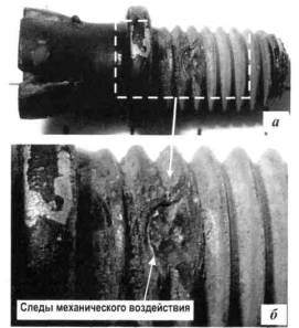 следами механического воздействия на поверхности винтовой нарезки