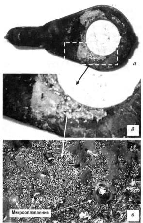 микрооплавления свидетельствовали о протекании дуговых разрядов между