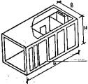 1.4. Типоразмеры, общий вид и основные конструктивные размеры объемных элементов приведены в табл. 1. 1.5. Объемные элементы имеют: пять типоразмеров по длине (1-6000 мм, 2-5980 мм, 3-5380 мм, 4-4780 мм, 5-4520 мм), два типоразмера по ширине (1-3180 мм, 2-2980 мм), четыре типоразмера по высоте (1-2770 мм, 2-2820 мм, 3-3270 мм, 4 - переменная высота объемного элемента покрытия). 1.6. Конструктивные размеры объемных блоков, толщина теплоизоляционного слоя должны соответствовать настоящему стандарту и проектной документации, утвержденной в установленном порядке, а конструктивные размеры доборных элементов, входящих в комплект объемного блока - требованиям проектов и соответствующих нормативных документов. 1.7. При необходимости допускается изготавливать объемные элементы с отверстиями и проемами в ограждающих конструкциях, отличающимися по размерам от принятых в проектной документации, но не более: в продольных стенах............... 0,70L ´ 0,8Н в торцевой стене...................... 0,50В ´ 0,8Н в плите пола............................. 0,75L ´ 0,9В в плите потолка....................... 0,75L ´ 0,9В Примечание: L, В, Н - длина, ширина и высота объемных элементов по проекту. 1.8. В случаях, предусмотренных проектной документацией конкретного здания объемные блоки могут иметь дополнительные проемы, отверстия, вырезы и закладные изделия. 1.9. Объемные блоки следует обозначать марками в соответствии с ГОСТ 23009-78. Марки состоят из буквенно-цифровых групп, разделенных дефисами. Таблица 1