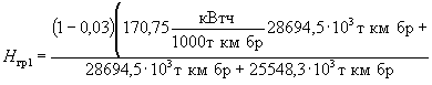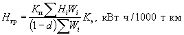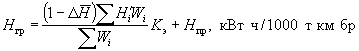 Групповая норма расхода электроэнергии Нгр, кВтч/ (1000 т км бр) |