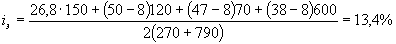 где iэm - эквивалентный уклон m-го участка, Lm - длина m-го участка по оси, км, L - длина всей сети по оси, км. Пример расчета приведенного эквивалентного уклона - имеются участки: l1 = 0,8 км с уклоном iэ1 = 12,3%; l2 = 1,0 км с уклоном iэ2 = 3,4%; l3 = 0,5 км с уклоном iэ3 = 7,2%. Протяженность всей сети по оси 18,2 км.