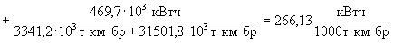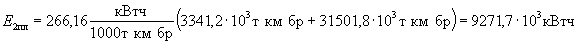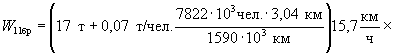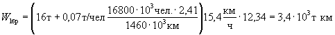 W4бр = 10,5 т·2617 км+0,07 т/чел·16328,2·103 чел.·3,52 км = 31501,8·103 т км бр