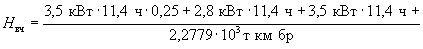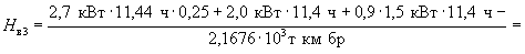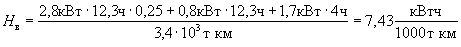 Норма расхода электроэнергии вспомогат. потребителями подвижного состава Нв кВтч/(1000 т км бр) |