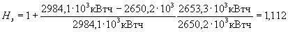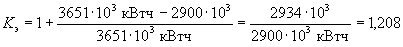 6. Определяем коэффициент потерь в системе электроснабжения по формулам 21 и 22. По предыдущему году Ето = 2900·103 кВтч.