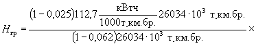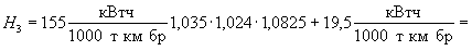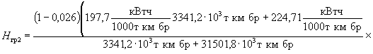 Норма расхода электроэнергии на токоприемниках подвижного состава Н кВтч/(1000 т км бр) |