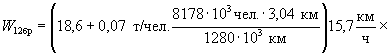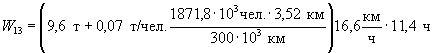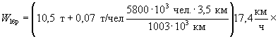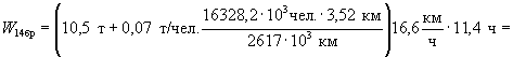 W3бр = 9,6 т·300·103 км+0,07 т/чел·1871,8·103 чел.·3,52 км = 3341,2·103 т км бр