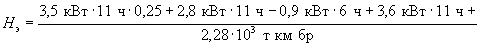 Норма расхода электроэнергии вспомогательными потребителями подвижного состава, Нв, кВтч/(1000 т км бр) |