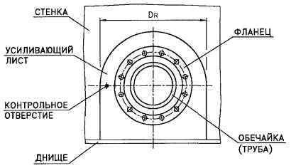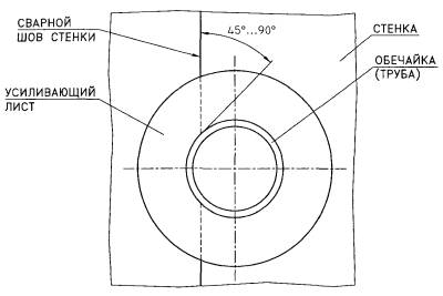 СОЕДИНЕНИЕ ОБЕЧАЙКИ (ТРУБЫ) СО СТЕНКОЙ И С УСИЛИВАЮЩИМ ЛИСТОМ