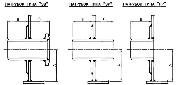 б) ПАТРУБОК С ФЛАНЦЕВЫМ ПРИСОЕДИНЕНИЕМ ОТВОДА