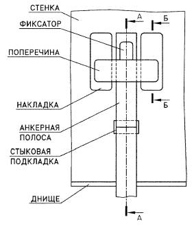 Днища, не имеющие сплошного основания, должны быть сварены двусторонней автоматической сваркой. Для монтажных соединений днища, располагаемых на опорных балках, допускаются односторонние нахлесточные соединения или стыковые соединения на остающейся подкладке. В качестве подкладки может использоваться верхний пояс опорной балки.
