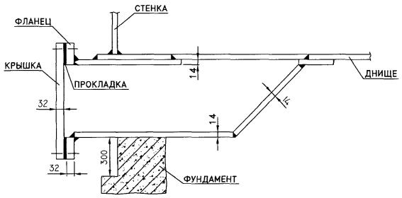 Соосно со стенкой резервуара на защитное днище приваривается опорная кольцевая полоса, толщина которой должна соответствовать толщине нижнего пояса стенки.