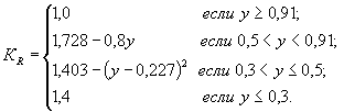 *эквивалентное давление при наливе водой (плотность 1,0). Расчетные параметры ПОЛ определяются приведенными ниже формулами в зависимости от диаметра резервуара D (м), высоты налива продукта Н (м), а также от размеров ПОЛ. Толщины вставки стенки (tSI) и усиливающего листа (tR) определяются из условия, что площадь поперечного сечения усиления ПОЛ, равная суммарной площади участков вставки стенки и усиливающего листа выше обечайки, удовлетворяет соотношению: Acs ≥ 0,5KR·HN·t1. Здесь и далее Acs - площадь поперечного сечения усиления (м2); t1 - толщина нижнего пояса стенки (м), требуемая расчетом на прочность по п. 9.2.2; HN - высота обечайки (м), принимаемая по таблице 8.9; KR - коэффициент усиления, определяемый следующим образом: