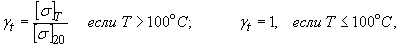 9.1.4. Учет температуры эксплуатации Для условий эксплуатации резервуаров при температуре выше плюс 100°С необходимо учитывать снижение расчетного сопротивления стали путем введения коэффициента γt, назначаемого в зависимости от максимальной расчетной температуры металла Т по формулам: