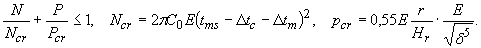 tb, Δtcb, Δtmb - соответственно толщина, припуск на коррозию и минусовой допуск на прокат окраечных (если предусмотрено - кольцевых) листов днища. 9.6.4.3. Устойчивость стенки проверяется от действия продольно-поперечной нагрузки, вызывающей ее изгиб и вертикальное сжатие в процессе опрокидывания резервуара с продуктом. За предельное состояние принимается фибровая текучесть стенки (с учетом коэффициентов γс и γn), проверяемая в вертикальном сечении оболочки. Несущая способность нижнего пояса стенки с расчетным сопротивлением по пределу текучести R1y и номинальной толщиной нижнего пояса t1 обеспечена, если выполняется условие: