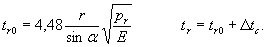 где t1 - номинальная толщина нижнего пояса стенки, полученная по п. 9.2 или п. 9.6 (что больше); k1 = 0,77 - безразмерный коэффициент; Δtcs, Δtcb - припуск на коррозию нижнего пояса стенки и днища соответственно; Δtmb - минусовой допуск на прокат окрайки днища. Если по согласованию с Заказчиком в листе окрайки днища допускаются пластические деформации, то следует принять k1 = 0,58. Номинальную толщину окрайки следует назначать с учетом ограничений: (0,006 + Δtcb) ≤ tb ≤ (0,016 + Δtcb). - 300 мм для резервуаров объемом до 5000 м3; - 600 мм для резервуаров объемом более 5000 м3, - величины, назначаемой в п. 9.6.6.4 (при наличии сейсмического воздействия), и не менее величины (мм), определяемой соотношением: