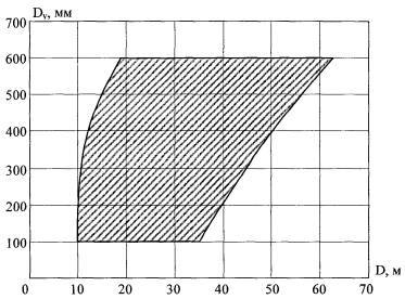 Рис. 9.5. Область допускаемых размеров патрубков Dy для раздела 9.5 9.5.2. Нагрузки на патрубок задаются в виде комбинаций трех усилий (рис. 9.6): радиальной силы вдоль оси патрубка FR* (кН), изгибающего момента в вертикальной плоскости ML* (кН·м), изгибающего момента в горизонтальной плоскости Мс* (кН·м). На рис. 9.6 показаны положительные направления усилий.
