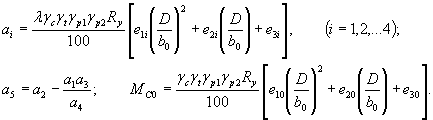 Здесь значения коэффициентов γс, γt, γp1, γp2, определяются соответственно в пп. 9.1.3, 9.1.4, 9.5.7, 9.5.8; МC0 - максимально допускаемая величина момента МC* при FR* = ML* = 0. 9.5.5. Параметр λ вычисляется в зависимости от величины момента МC* по формуле: