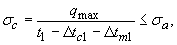 в котором расчетные нагрузки по контуру стенки в основании резервуара qmax вычисляются в п. 9.6.6.1, а допускаемые сжимающие напряжения в этом поясе определяются выражением: