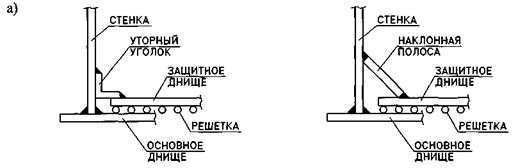Основное и защитное днища могут находиться в контакте друг с другом или разделяться арматурными сетками или решетками.