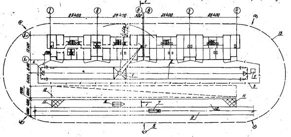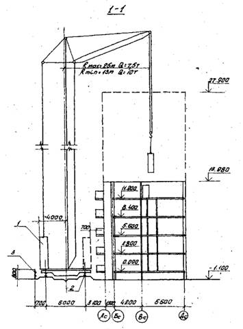 высоте здания до 1.4. При привязке типовой технологической карты к конкретному объекту и условиям строительства принятый в карте порядок выполнения работ по монтажу вентиляционных блоков, размещение машин и оборудования, объемы работ, средства механизации уточняют в соответствии с проектными решениями. 2. ОРГАНИЗАЦИЯ И ТЕХНОЛОГИЯ ВЫПОЛНЕНИЯ РАБОТ2.1. До начала монтажа вентиляционных блоков должны быть выполнены организационно-подготовительные мероприятия в соответствовать со СНиП 3.01.01-85 "Организация строительного производства". Кроме того должны быть выполнены следующие работы: смонтированы, наружные и внутренние стеновые панели (в случае монтажа, вентиляционных блоков, примыкающих к внутренним стеновым панелям и сантехкабинам); смонтированы все конструкции типового этажа, включая плиты перекрытия (в случае монтажа отдельно стоящих вентиляционных блоков); очищены каналы нижестоящего вентиляционного блока от остатков раствора и других посторонних предметов; доставлены на площадку и подготовлены к работе механизмы, инвентарь и приспособления; рабочие и ИТР ознакомлены о технологией работ и обучены безопасным методам труда. 2.2. Монтаж надземной части здания, в" том числе вентиляционных блоков, рекомендуется выполнять башенными кранами. Расположение башенного крана и расстояние подкрановых путей от здания устанавливается при привязке карты в зависимости от объемно-планировочного решения здания и марки крана. Максимальное расстояние, от оси движения крана до стены определяется его технической характеристикой, минимальное - условиями безопасности работ в соответствии со СНиП III-4-80* "Техника безопасности в строительстве". Схема расположения монтажного крана приведена на рис 1, 2. 2.3. Транспортирование вентиляционных блоков осуществляют полуприцепами-панелевозами в вертикальном или слегка наклонном (не более 12° к вертикали) положении. Размещают вентиляционные блоки на панелевозах в соответствии с погрузочными карточками, которые составляют на заводах-изготовителях согласно графику монтажа объектов. Автотранспорт должен иметь необходимые приспособления, обеспечивающие устойчивое положение вентиляционных блоков при транспортировании и предохраняющие. их от повреждения. Под тросы, крепящие вентиляционные блоки, следует подкладывать мягкие прокладки во избежание повреждений кромок и поверхностей. Монтаж вентиляционных блоков выполняют в основном с транспортных средств. В случае, когда монтаж с транспортных средств невозможен, вентиляционные блоки выгружают на оклад, расположенный в зоне действия монтажного крана. Хранить вентиляционные блоки на складе следует в кассетах или в пирамидах (рис. 3). Загрузка и разгрузка должна быть равномерной с обеих сторон пирамиды во избежание ее опрокидывания. Строповку и расстроповку вентблоков, хранящихся на складе-пирамиде, производят с ее верхней площадки. Погрузочно-разгрузочные работы и транспортирование вентиляционных блоков производят с соблюдением мер, исключающих возможность их повреждения. Раствор готовят централизованно и доставляют на объект при помощи автотранспортных средств: авторастворовозов, автобетоновозов, автобетоносмесителей и автосамосвалов. Растворные смеси на строительной площадке следует хранить в ящиках-контейнерах, в поворотных бад