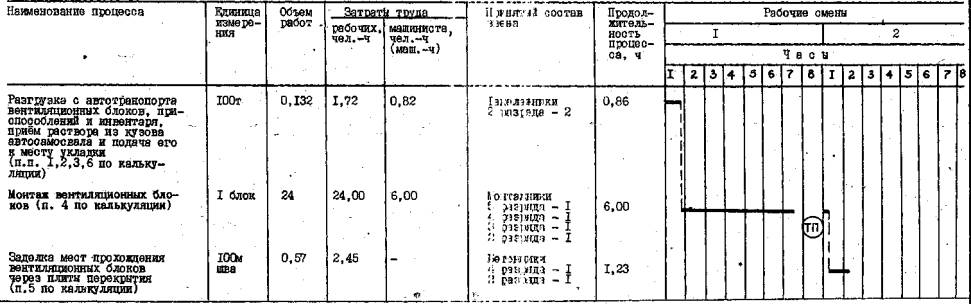 вентиляционных блоков выполняют в три смены. Картой предусматривается монтаж