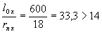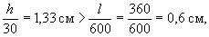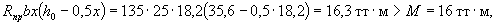 Отсюда h0 = h - а1 = 50 - 14,4 = 35,6 см. Из табл. 1 имеем xR = 0,58. Так как х = 18,2 см < xRh0 = 0,58×35,6 = 20,6 см, прочность сечения проверяем из условия (4):
