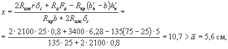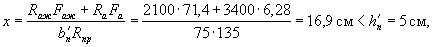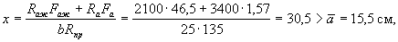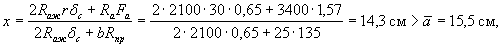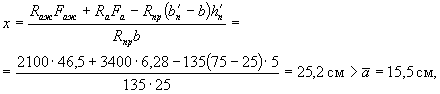 т.е. 1-й случай расчета исключается. Вычисляем высоту сжатой зоны х по 2-му случаю по формуле (11) при