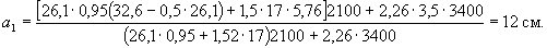 т.е. действительно имеет место 1-й случай расчета. Определяем а1 - расстояние от центра тяжести растянутой арматуры до крайнего растянутого волокна по формуле