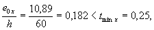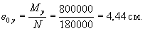 Эксцентрицитет е0 продольной силы в плоскости оси х равен