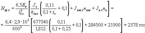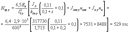 Величину критической силы Nкр х определяем по формуле (21), принимая из примера 9 Jх = J = 677540 см4; Jаж xnаж = 284 500 см4: Jа xnа = 21900 см4.