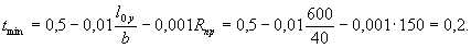 Учитываем влияние прогиба колонны согласно п. 3.25. По формулам (22) и (23) вычисляем kдл и tmin