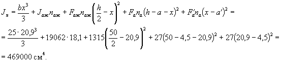 Определяем радиус инерции приведенного сечения rп. Для этого вычислим площадь Fn и момент инерции Jn приведенного сечения
