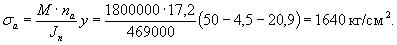 Определяем напряжение в крайних растянутых стрежнях арматуры