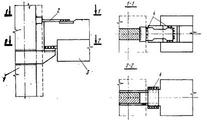 с жесткой арматурой СТЫКИ ЭЛЕМЕНТОВ 5.14. Стыки жесткой арматуры должны обеспечивать передачу расчетных усилий в местах соединения элементов. Конструкция соединения элементов жесткой арматуры между собой выполняется в соответствии с требованиями, предъявляемыми к соединениям металлических конструкций с учетом технологии обетонирования. 5.15. Стыки гибкой арматуры должны приниматься в соответствии с указаниями главы СНиП II-21-75. 5.16. Стык железобетонных колонн с жесткой арматурой типа сердечник и стык сборного ригеля с колонной рекомендуется выполнять в соответствии с рис. 21 и 22. |