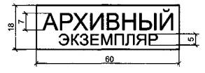 Г.7 Штампы «КОНТРОЛЬНЫЙ ЭКЗЕМПЛЯР» и «АРХИВНЫЙ ЭКЗЕМПЛЯР» ставят соответственно на контрольных и архивных экземплярах копий и на папках (томах, альбомах). Форма штампа «КОНТРОЛЬНЫЙ ЭКЗЕМПЛЯР» приведена на рисунке Г.6. Форма штампа «АРХИВНЫЙ ЭКЗЕМПЛЯР» приведена на рисунке Г.7.