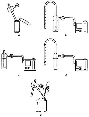 пробы воздуха; d - измеряют расход; е - переносят раствор пробы из импинжера