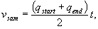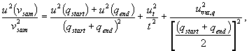 где qstart - расход в начале периода отбора пробы (как правило, мл/мин); qend - расход в конце периода отбора пробы (как правило мл/мин); t - продолжительность отбора проб, мин. Неопределенность результатов измерения объема отобранного воздуха складывается из неопределенностей, связанных: a) с измерениями расхода до и после отбора проб, b) с измерениями времени отбора проб и c) с изменениями расхода во время отбора проб, - и может быть вычислена по формуле